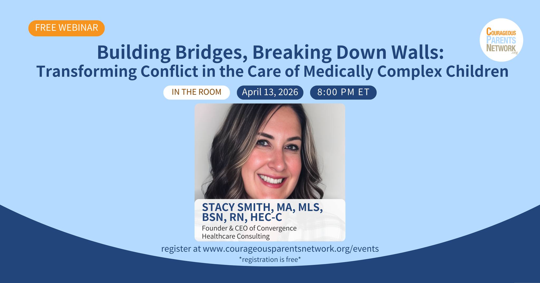 Courageous Parents Network invites you to join their upcoming virtual workshop: Building Bridges, Breaking Down Walls: Transforming Conflict in the Care of Medically Complex Children on Monday April 13, 2026 at 8:00 pm ET.